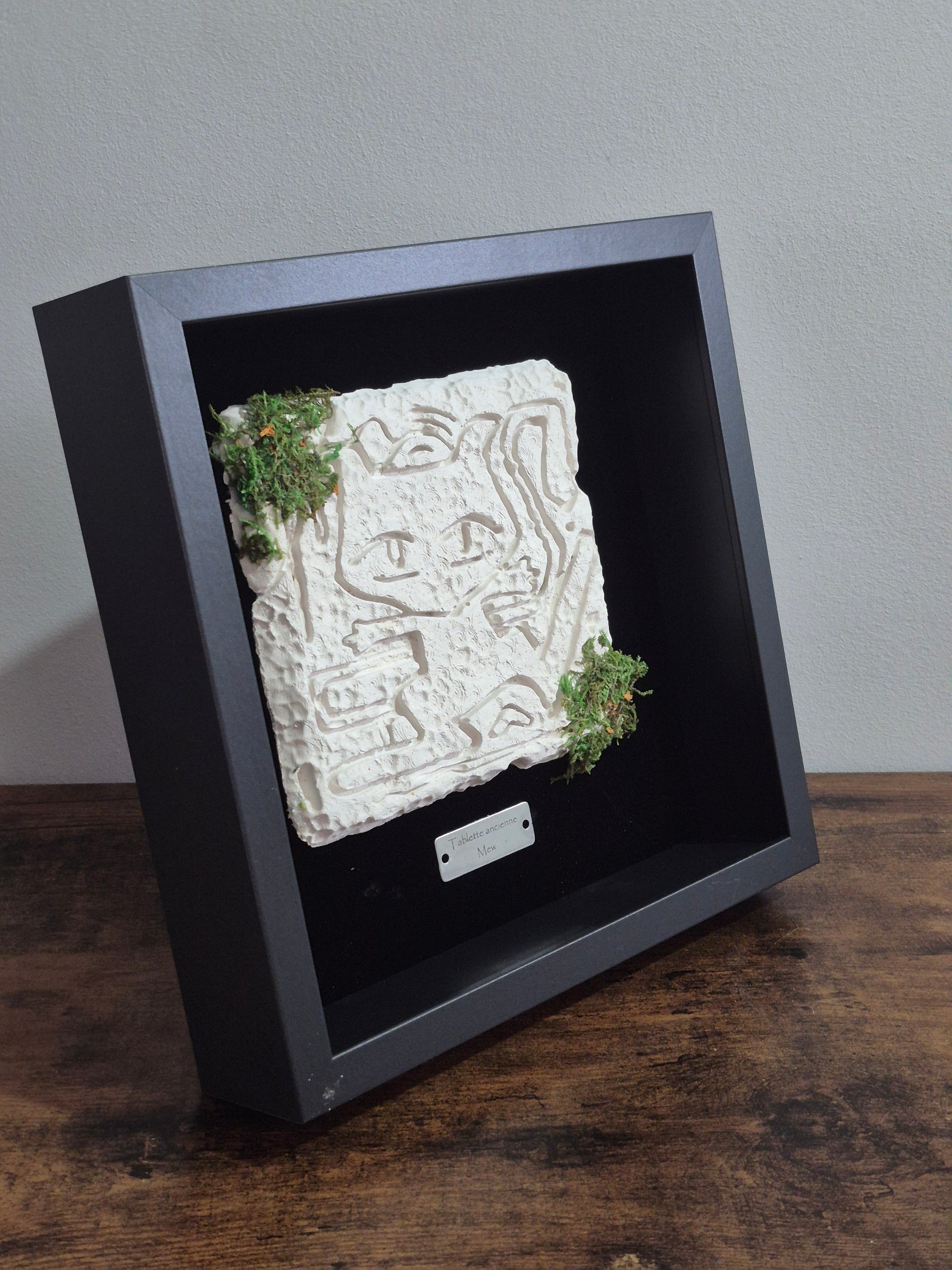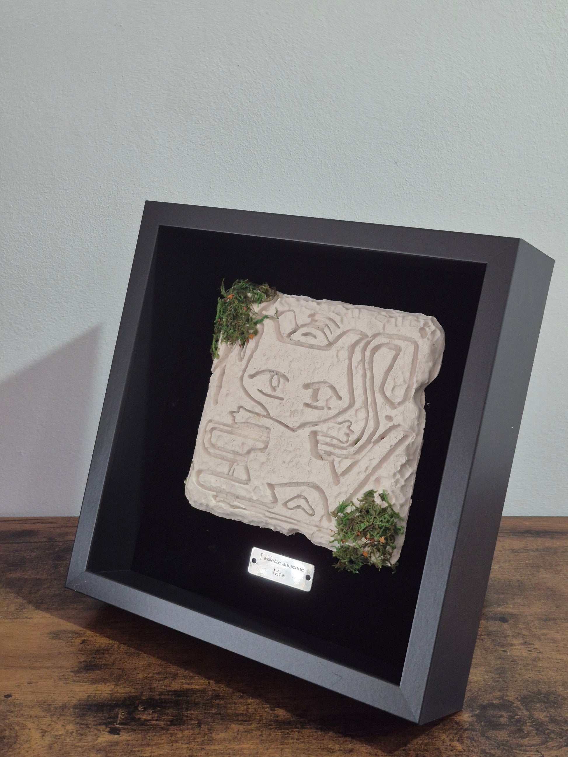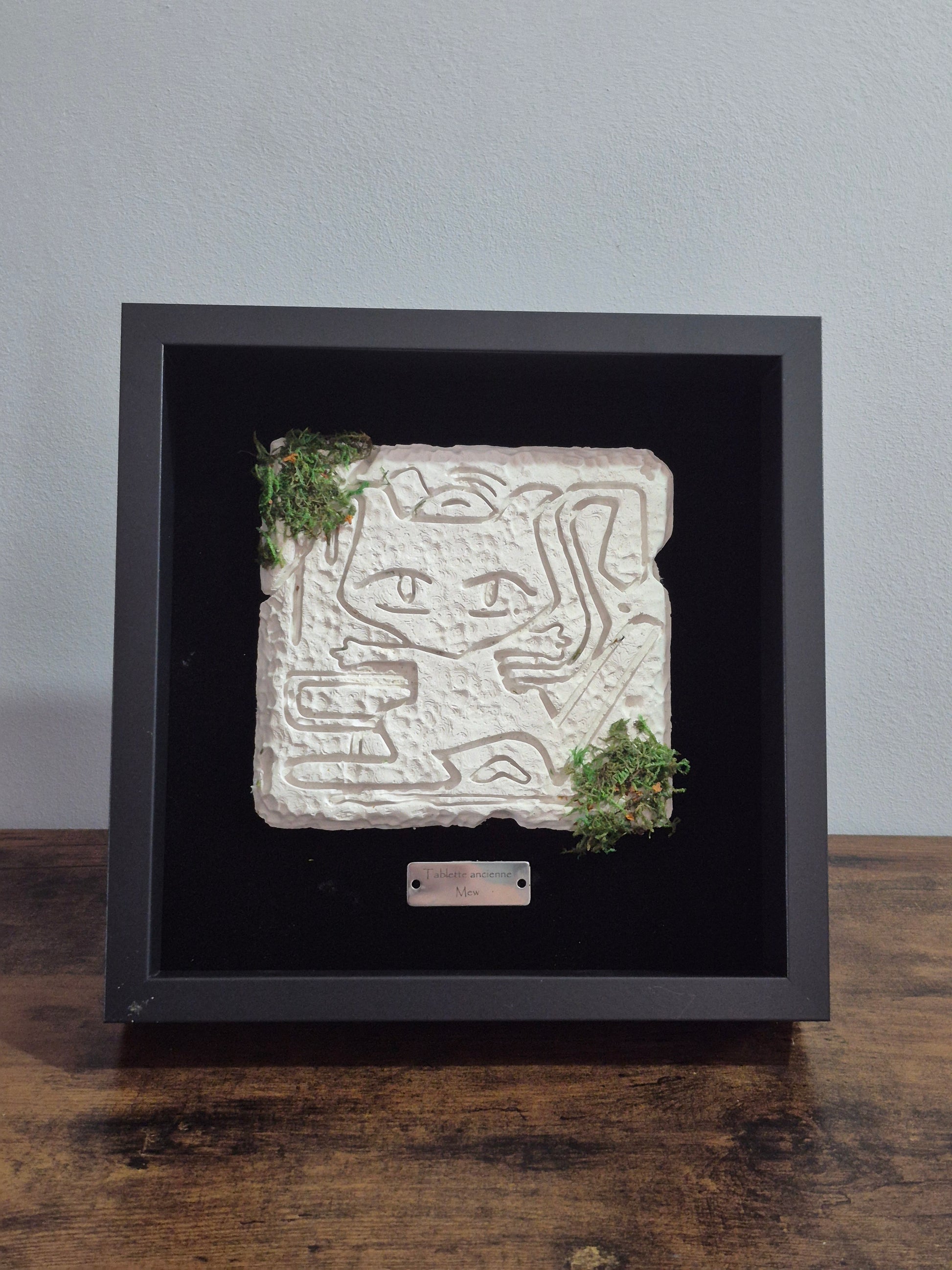 Découvrez cette superbe tablette sculptée, inspirée du premier film Pokémon, représentant Mew dans un style archéologique unique. Entièrement réalisée à la main, chaque pièce apporte une touche mystique et authentique à votre collection.